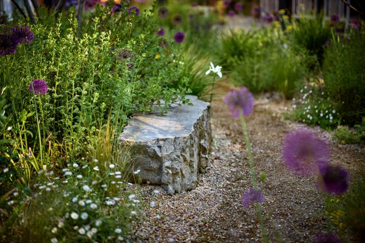 This boulder seat highlights the value of hands-on involvement during the build. Bespoke features, carefully chosen and precisely positioned on site, nestle organically within the garden.