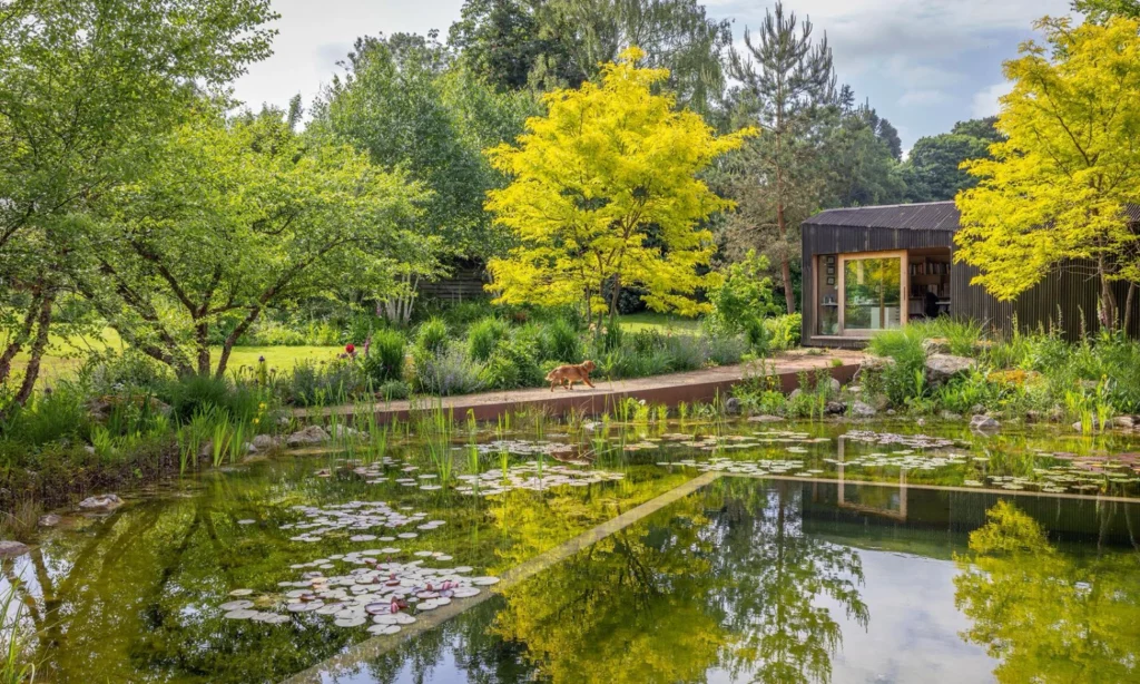 At Matthew Childs Design, we have included swimming ponds in a number of our recent projects, including Ivy Cottage. Swimming ponds provide wonderful, relaxing spaces for people to enjoy, combined with the wildlife benefits of natural water features. They use biological filtration and plants to keep the water clear and healthy, making them both beautiful and ecological. Margins can be planted with reeds, water mint, irises and water lilies, integrating the pond seamlessly into the cottage garden landscape.