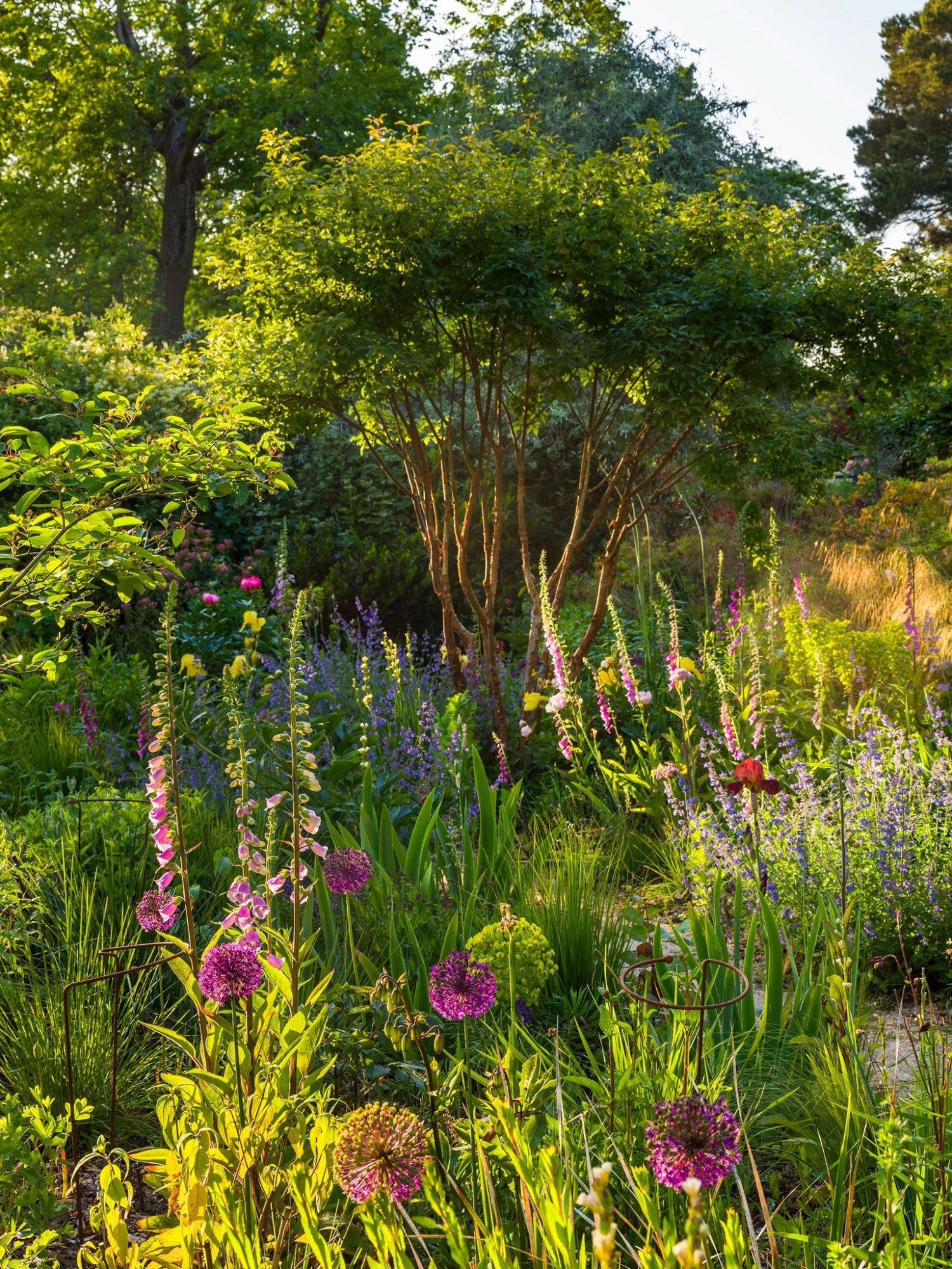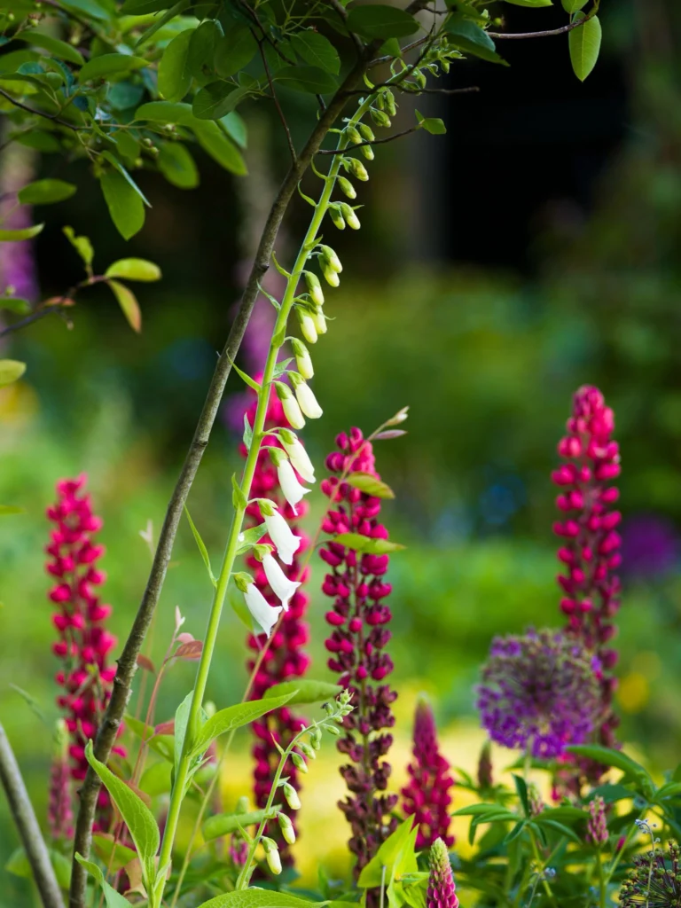 We let foxgloves and honesty self-seed freely across the garden, as they create a stunning vertical accent across the planting borders, along with lupins and Salvia nemorosa ‘Caradonna’.