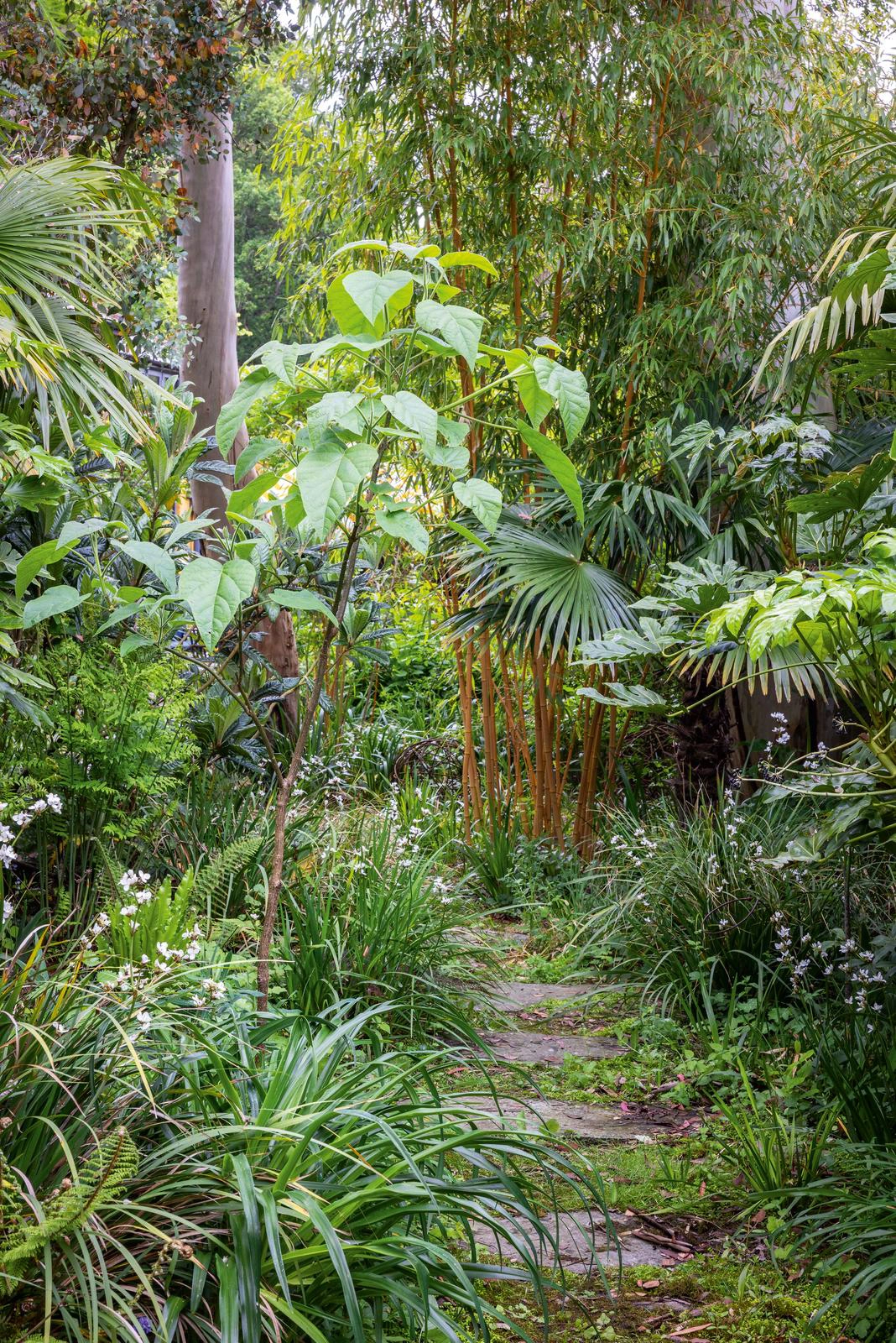 We have also embraced more unusual plants at Ivy Cottage, not often seen in a traditional cottage garden scheme, such as fatsia, tetrapanax, clumping bamboo and loquat. The planting has created a ‘verdant jungle’ surrounding a firepit and was inspired by majestic eucalyptus trees found on site.